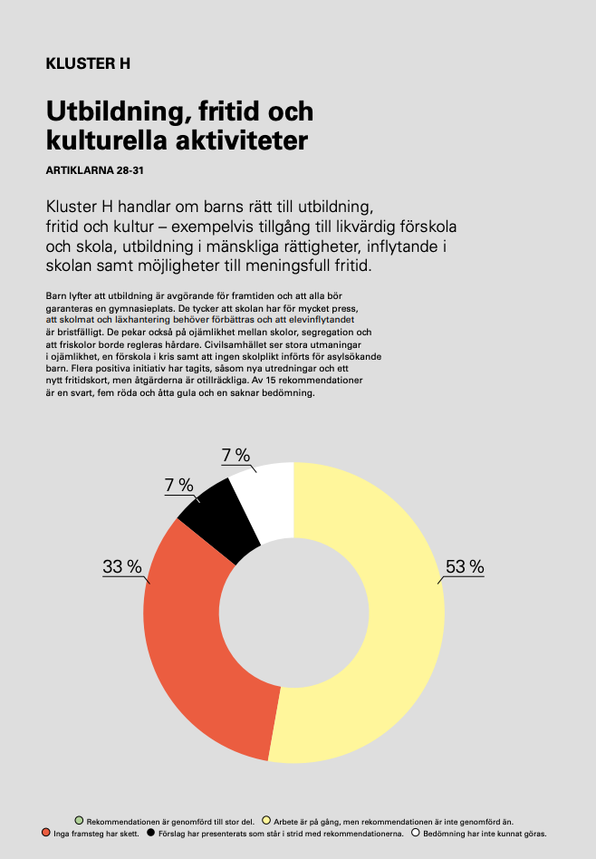 https://unicef.se/barnkonventionen/nya-lagforslag-strider-mot-barns-rattigheter - this is the page where you can download the document where UNICEF points out which articles of the children’s rights are in practice (green) which are on their way to be in practice (amber) and which are not being addressed (red). Sadly the document writers were required to create a fourth colour, black, for articles that were being undone, and decisions were being made to make it impossible to uphold the articles. And white was put in place for articles they were unable to pass a judgement on.