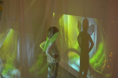 Natural light - daylight is important for our physical and mental health, and good sleep hygiene. This can be done outdoors, and as well as designing indoor spaces with adequate windows. In countries with short daylight hours during the winter it is important to think about being outside primarily when there is daylight - for older children outdoor play in the mornings can be a great way for creating a healthy circadian rhythm. This is not about sunshine, but about daylight and more complex light. Artificial light does not have the same spectrum as natural light, and devices with screens emit blue light that can disturb sleep rhythms (circadian rhythm). It is about finding balance with your natural light diet. I am also a shade nerd - and over the decades noticed the shade complexity of trees and nature in contrast to human-made shade that tends to be more block like. This shadow complexity is also beneficial to brain development, sleep and healthy eye development. The same can apply to reflections - and right now I envisage the reflections of moving water.
